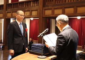 3月18日、本学講堂で令和6年度職員表彰式を行いました。この表彰は、特に功労があって規範として推奨すべき教職員を表彰することで、他の教職員の意欲を高め、大学の発展に寄与することを目的として行われているものです。