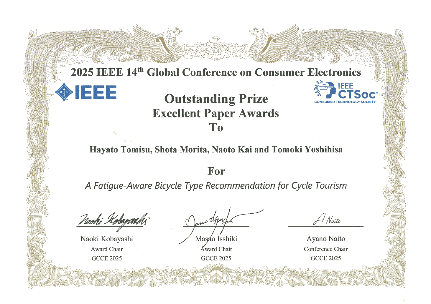 なお、義久ゼミ所属の戸簾さんは、本会議において「Excellent Paper Award」を受賞する快挙を達成しました。
