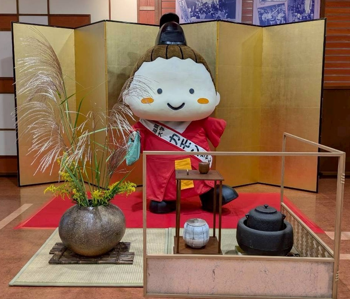 また、イベント名物「キャラ茶会」では、お茶とお菓子を通じて来場者をもてなし、穏やかな交流のひとときを過ごしました。カモンちゃんの柔らかいしぐさと穏やかな雰囲気に、会場は終始和やかな空気に包まれました。PRステージでは、カモンちゃんの紹介とともに滋賀大学の取り組みをクイズ形式で発表し、本学の魅力をしっかりとアピールしました。