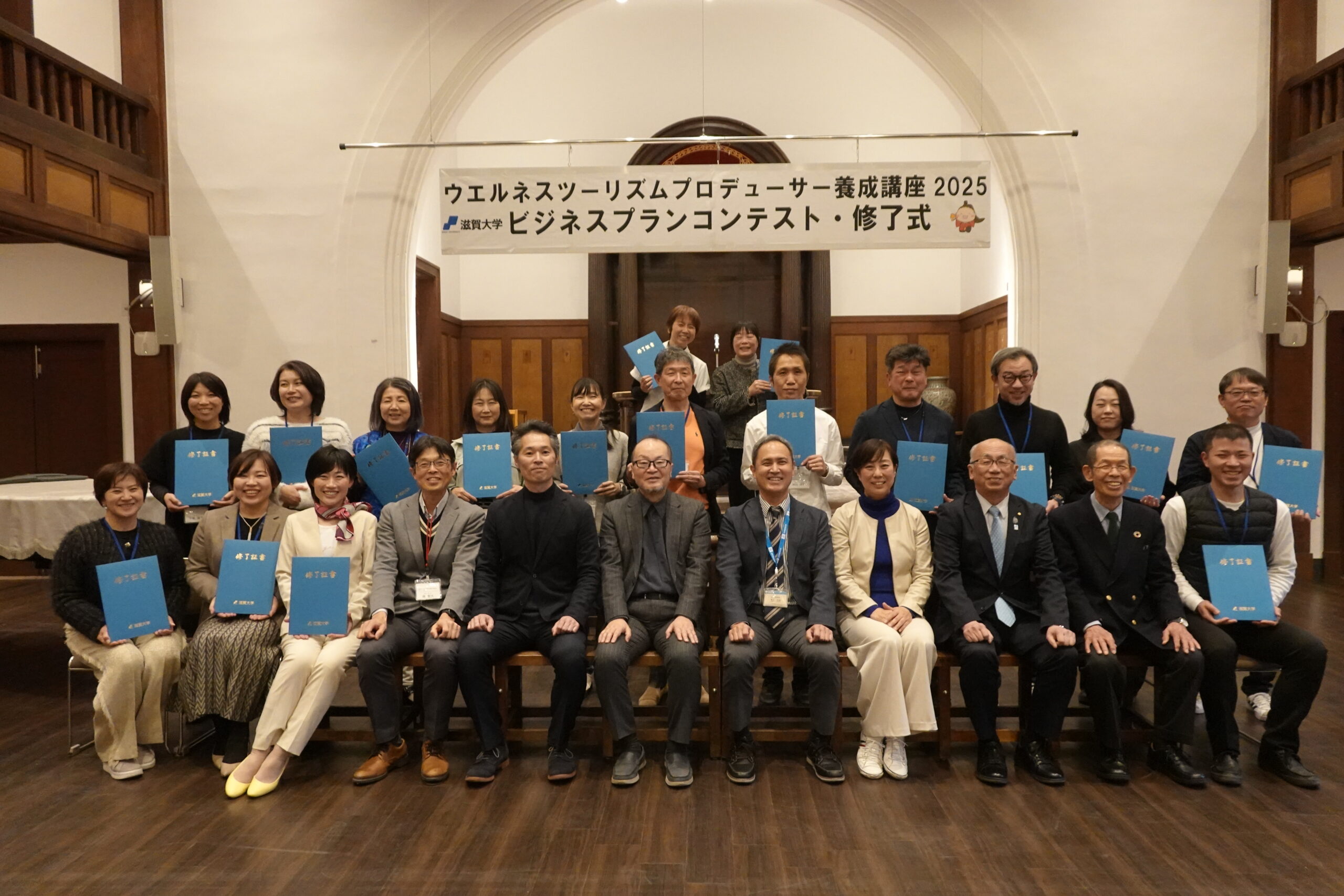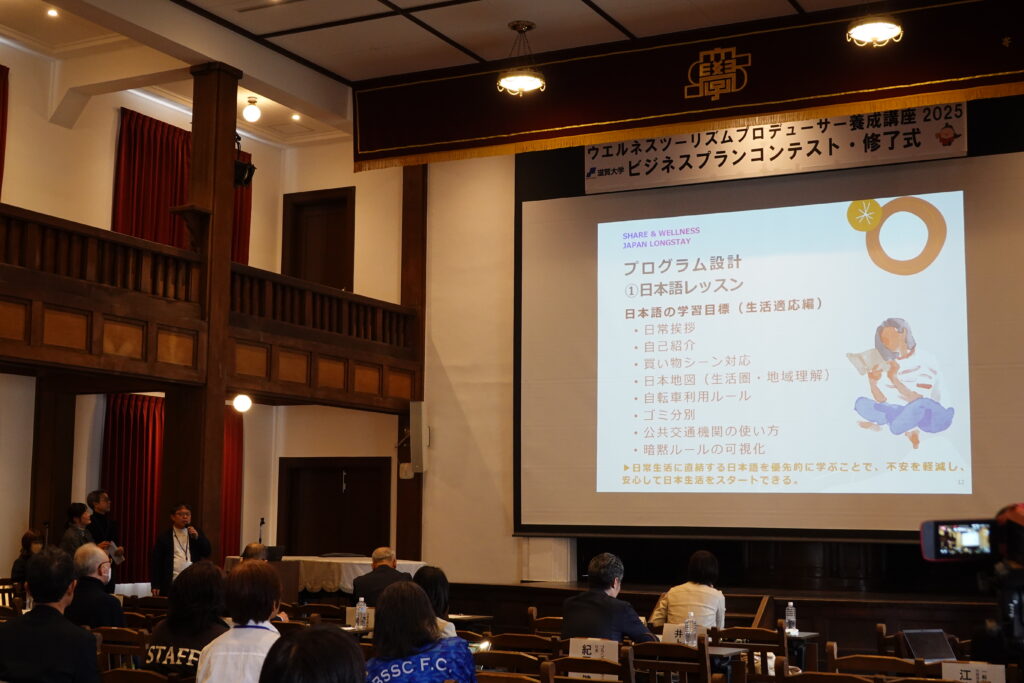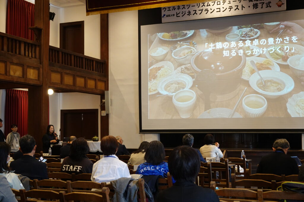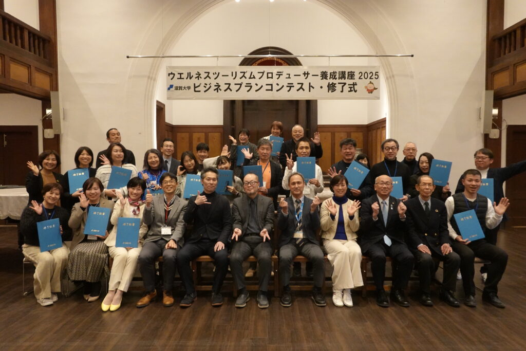 2026年3月13日(金)、滋賀大学彦根キャンパス講堂にて「ウエルネスツーリズムプロデューサー養成講座2025」ビジネスプランコンテスト・修了式を行いました。