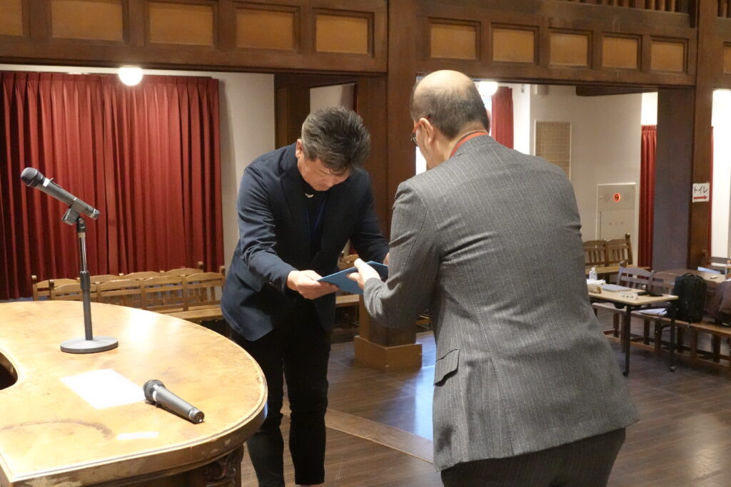 続いて行われた修了式では、今回発表したビジネスプランの社会実装を目指して審査員から講評があり、最後に産学公連携推進機構の上田特別招聘教授から、各受講生に修了証書が授与され、本年度は7期生として19名が無事修了し、最終講座が終了しました。